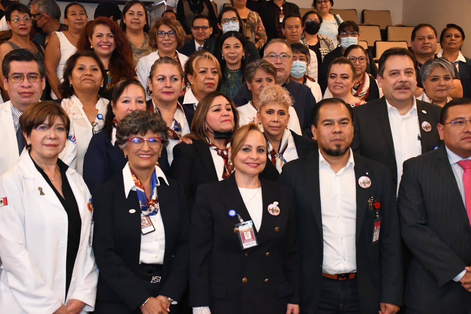 En el presídium estuvieron también la licenciada María Teresa Duarte Magaña, Secretaria General de la Sección XLI, del Hospital Regional 1o de Octubre; enfermera Petra Carreón Muñoz, Secretaria de Asuntos de Enfermería del CEN del SNTISSSTE; la doctora Celina Trujillo Esteves, encargada de la Subdirección Médica del HR 1o de Octubre y el doctor Juan Carlos Paredes Palma, Coordinador del Programa Nacional de Profesionalización y Excelencia Laboral del SNTISSSTE.