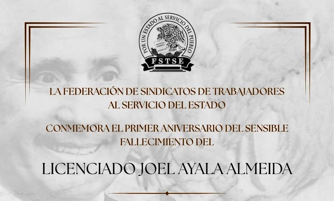 La Federación de Sindicatos de Trabajadores al Servicio del Estado conmemoró este 27 de enero 2026, el primer aniversario del sensible fallecimiento del Licenciado Joel Ayala Almeida, líder de esta central de trabajadores durante las últimas tres décadas.