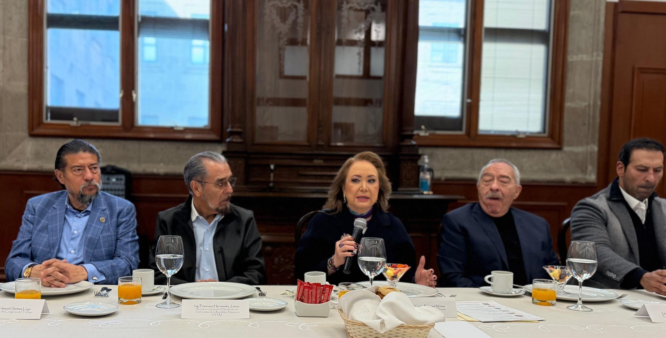 Entre los dirigentes que asistieron al encuentro estuvieron Javier Ismael Santos Loyo, Vicepresidente del Congreso del Trabajo; Francisco Hernández Juárez, del Sindicato de Telefonistas, así como otros líderes de Confederaciones, Federaciones y Sindicatos Nacionales del Movimiento Obrero Organizado del País.