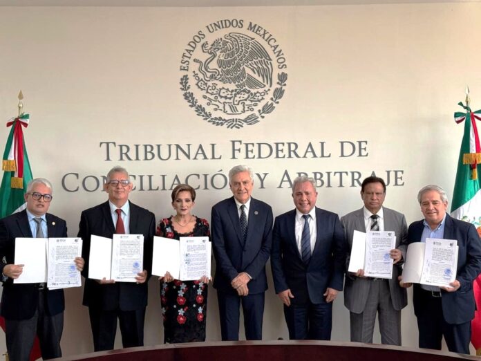 El Tribunal Federal de Conciliación y Arbitraje que preside el Magistrado Cristóbal Arias Solís entregó la Toma de Nota a cinco dirigentes de sindicatos de trabajadores al servicio del Estado, entre ellos al Dr. Diego Valdéz Medina líder del SUTPJ-CDMX.