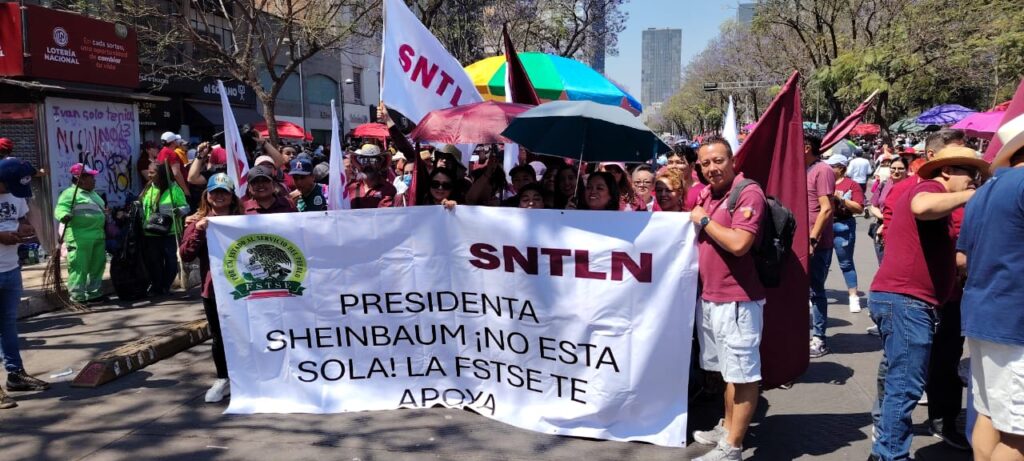 Algunas de las frases impresas en las enormes mantas que los sindicatos de la FSTSE portaban fueron “¡La FSTSE, Unida con su presidenta Claudia!”, “¡Vamos juntos, México nos necesita!” ,“¡La FSTSE presente ante su presidenta Claudia”! , “¡Diálogo y negociación; no a la imposición!”, “¡ FSTSE apoya a la Jefa de las Instituciones!” , “¡ Presidenta Sheinbaum, no está sola, la FSTSE le apoya!”, entre muchas otras.