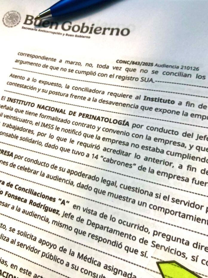 Una queja revela que el jefe del Departamento de Servicios del Instituto Nacional de Perinatología (INPER) en México, Luis Antonio Fonseca Rodríguez, acudió en estado de ebriedad a una reunión convocada el 21 de enero de 2026 en la Secretaría Anticorrupción y Buen Gobierno (SAyBG), que encabeza Raquel Buenrostro, lo que obligó a suspender la audiencia de conciliación relacionada con el adeudo por más de seis millones de pesos que el instituto tiene con la empresa de limpieza que le dio el servicio hace un año.