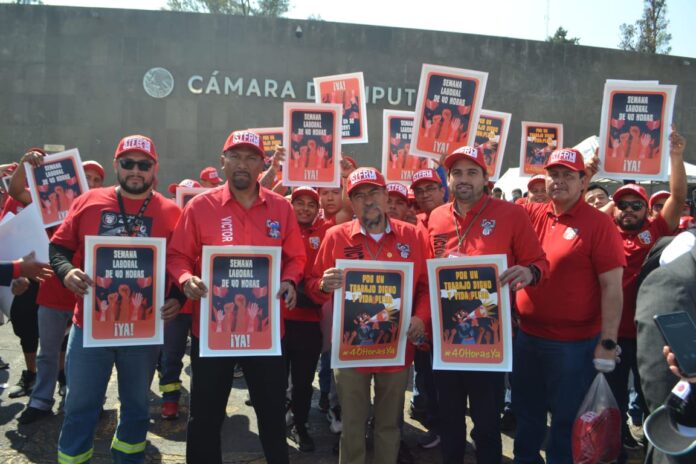 La representación del Sindicato de Trabajadores Ferrocarrileros de la República Mexicana, encabezó el mayor contingente y a las afueras del edificio parlamentario solicitaron se aprueba lo antes posible, la reducción de jornada laboral de 48 a 40 horas semanales.