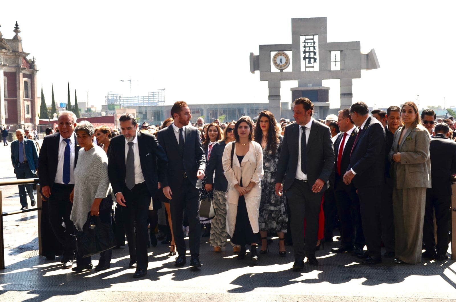 Hasta el atrio de la Basílica de Guadalupe llegaron cientos de trabajadores al servicio del estado. Junto con ellos las dirigencias que conforman la central FSTSE llenaron el recinto guadalupano para escuchar el mensaje eclesiástico en memoria del Lic. Joel Ayala Almeida en el primer aniversario de su fallecimiento.