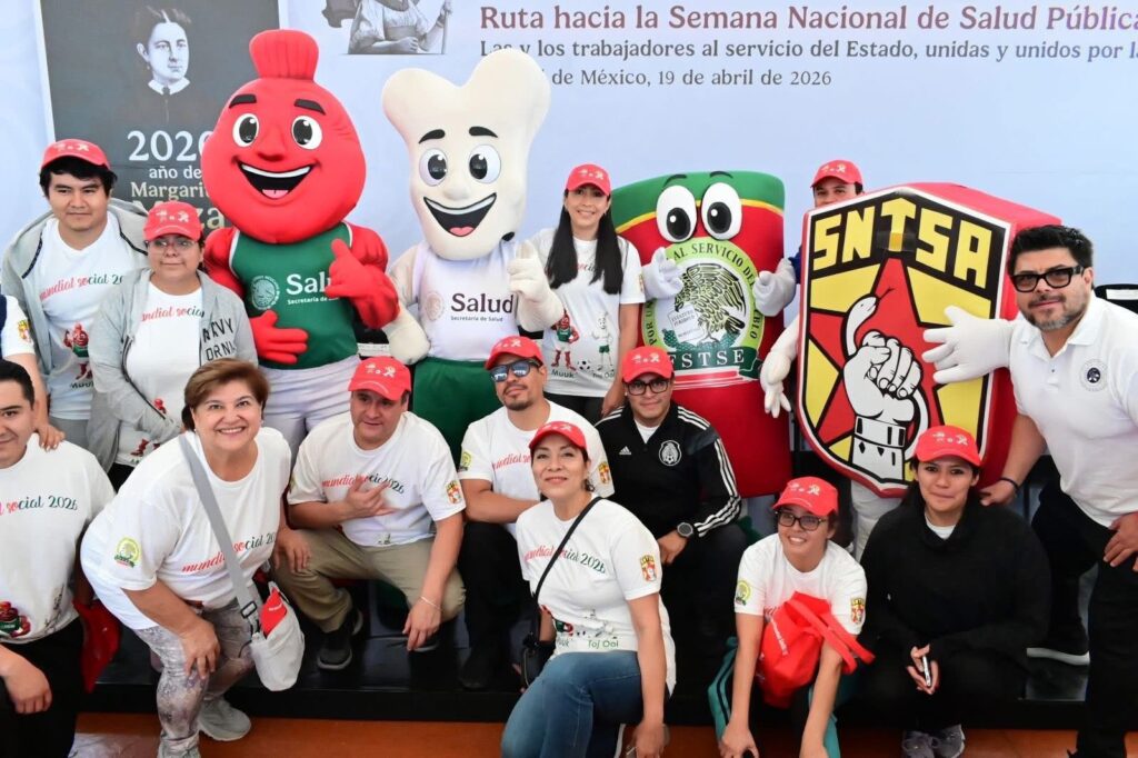 Ciudad de México, 19 de abril de 2026.– En un esfuerzo conjunto por fortalecer el bienestar de las y los trabajadores, la Secretaría de Salud, en coordinación con la Federación de Sindicatos de Trabajadores al Servicio del Estado (FSTSE) y organizaciones sindicales, llevó a cabo el evento “Salud en el Mundial Social 2026”, con el objetivo de consolidar la actividad física como un derecho y una práctica permanente en los centros de trabajo.
