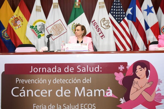 En la sede nacional del SNTISSSTE, trabajadoras de base atendieron la invitación de la dirigente nacional, doctora Norma Liliana Rodríguez Argüelles, para cuidar de su salud con acciones preventivas, además de escuchar conferencias y exposiciones para detectar a tiempo el cáncer de mama en la Jornada de Salud: Prevención y detección del cáncer de mama y la feria de la salud ECOS “lo que toda mujer debe saber”.
